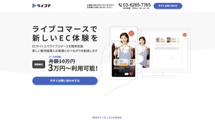 ライコマは、ライブコマースの本格運用を目指す企業様向けに、独自のツール提供から、導入〜効果的な活用までの運用サポートを一気通貫で提供するソリューションサービスです。